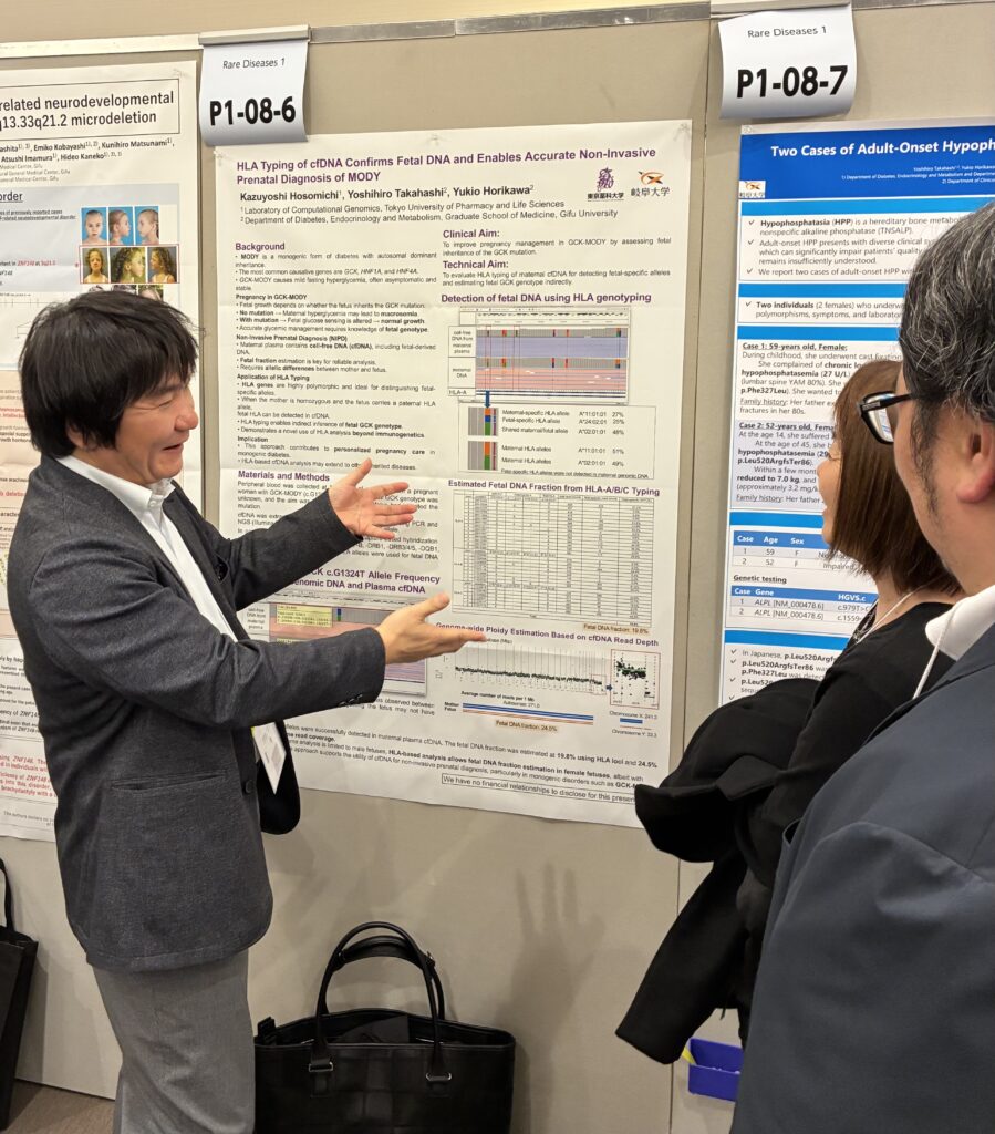 12/18〜12/20にパシフィコ横浜で行われた、日本人類遺伝学会 第70回大会に修士2年2名、修士1年1名、学部4年5名が参加し、修士1年の佐々木さんが「Identification of a Novel ATP7B Pathogenic Variant in Ecuadorian Patients with Wilson’s Disease」という題目で、細道教授が「HLA Typing of cfDNA Confirms Fetal DNA and Enables Accurate Non-Invasive Prenatal Diagnosis of MODY」という題目でポスター発表を行いました。