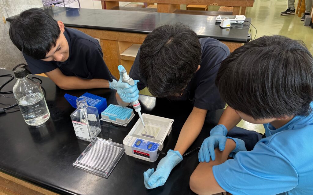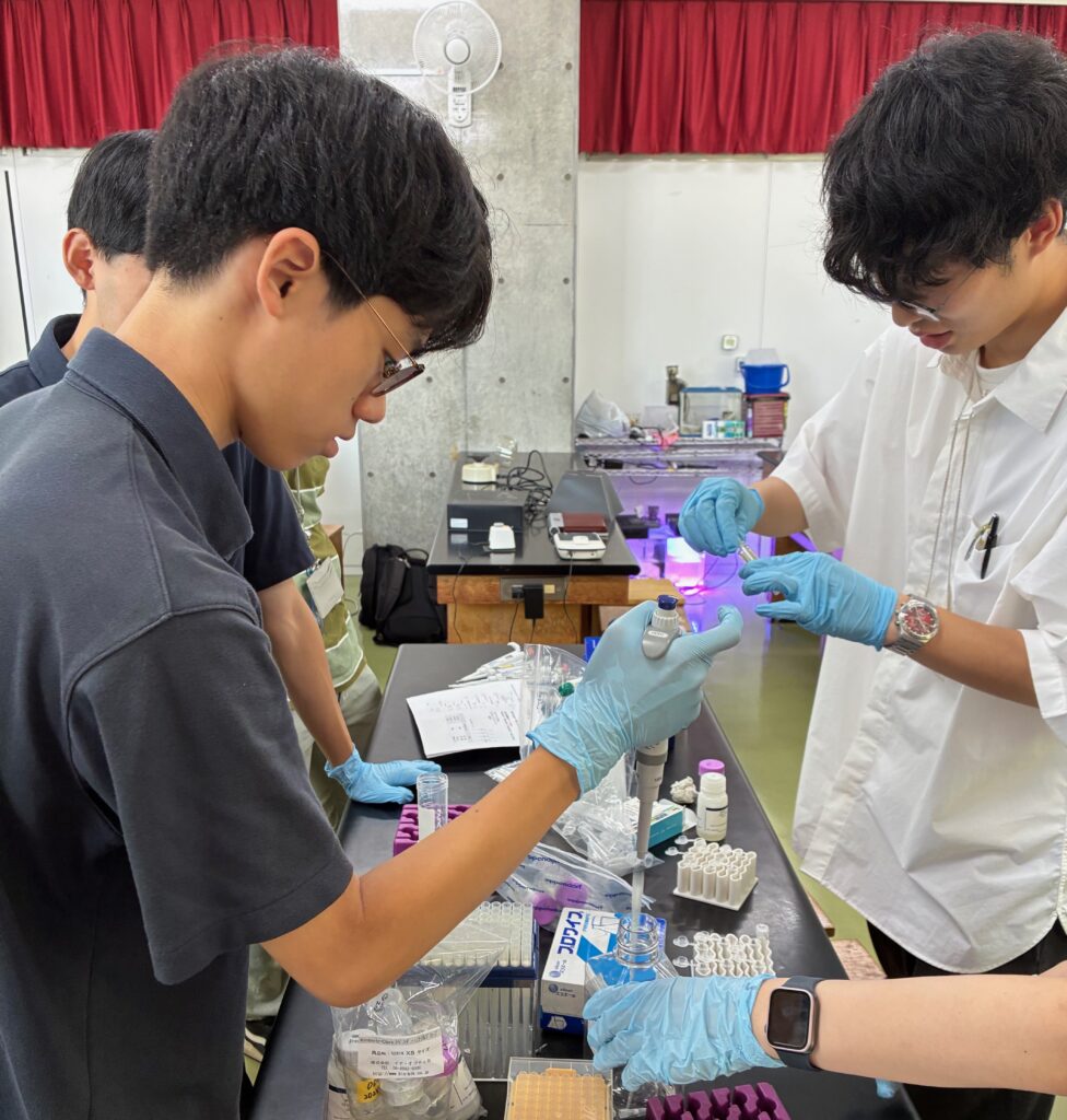 7月30日、神奈川県立多摩高等学校にて実験実習を行いました。1回目から3回目までの実習で実施して来た事を、通して行いました。
